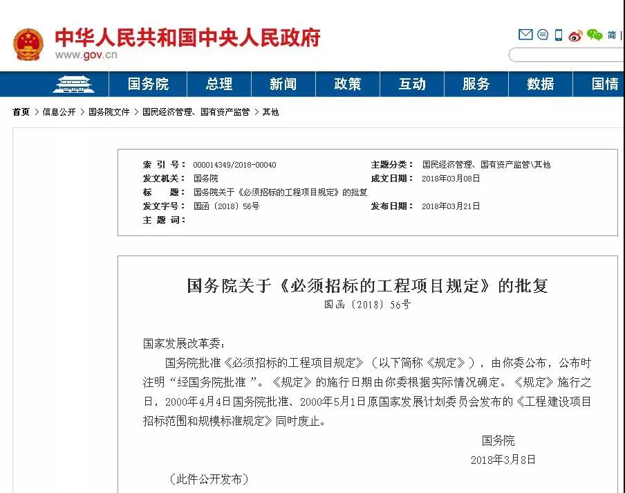 第四條 不屬于本規(guī)定第二條、第三條規(guī)定情形的大型基礎設施、公用事業(yè)等關系社會公共利益、公眾安全的項目,必須招標的具體范圍由國務院發(fā)展改革部門會同國務院有關部門按照確有必要、嚴格限定的原則制訂,報國務院批準。